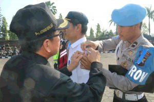 Usai membacakan sambutan Kapolri Pjs Walikota menyematkan pita tanda kesiapan pasukan kepada perwakilan yang terdiri dari unsur TNI, Polri dan dari unsur Pemerintah Kota Tegal dan dilanjutkan pengecekan kesiapan armada serta personil secara langsung dari masing masing pasukan.