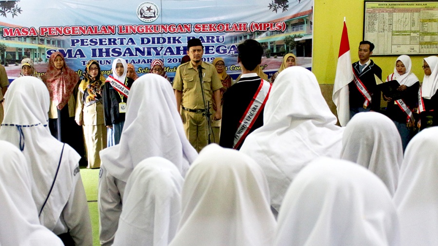 Para siswa datang pukul 06.30 WIB. Kegiatan MPLS ini, diawali dengan upacara pembukaan oleh kepala SMA Ihsaniyah Tegal, Zainal Muttaqin SE.