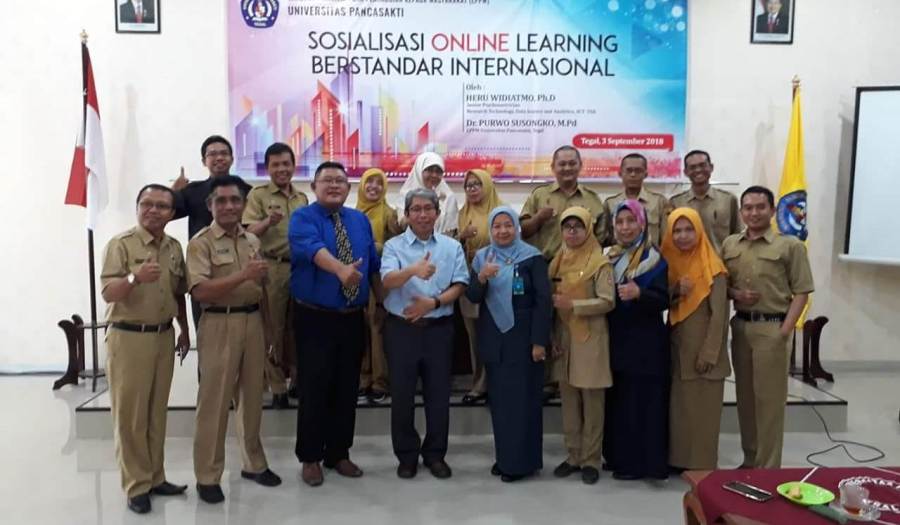 TEGAL-UPS Tegal melaksanakan sosialisasi pembelajaran daring (Online learning) bestrandar internasional di Aula YPP UPS Tegal, Selasa (5/9).