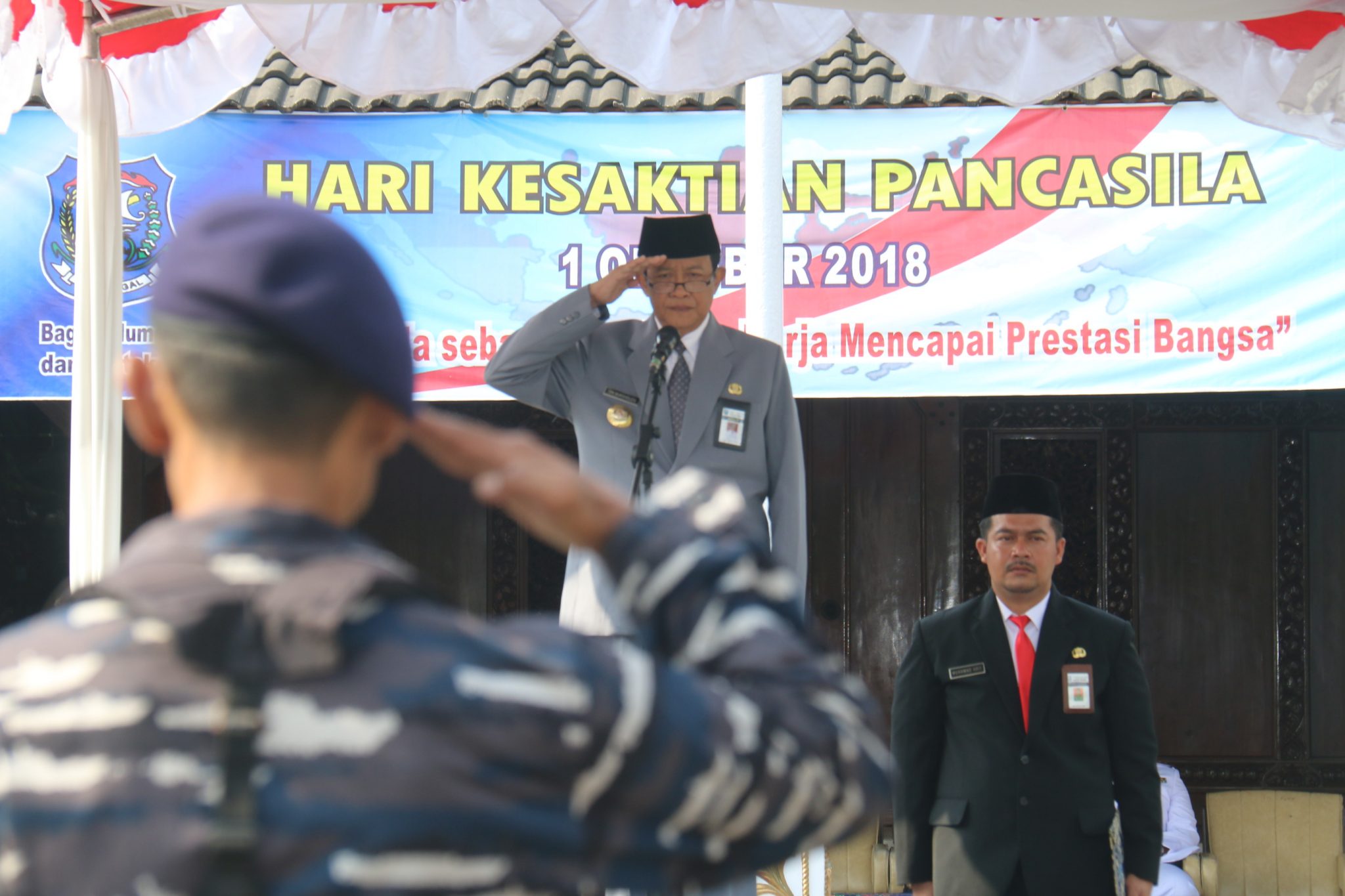 TEGAL- Peringati Hari Kesaktian Pancasila, Pemerintah Kota Tegal menyelenggarakan Upacara Peringatan Hari Kesaktian Pancasila Tahun 2018 yang dilangsungkan di Halaman Pendopo Ki Gede Sebayu Kota Tegal. Senin (1/10). Walikota Tegal Drs. HM Nurholeh, M.MPd memimpin langsung jalanya upacara yang rutin diselenggarakan rutin setiap tanggal 1 Oktober setiap tahunnya itu.
