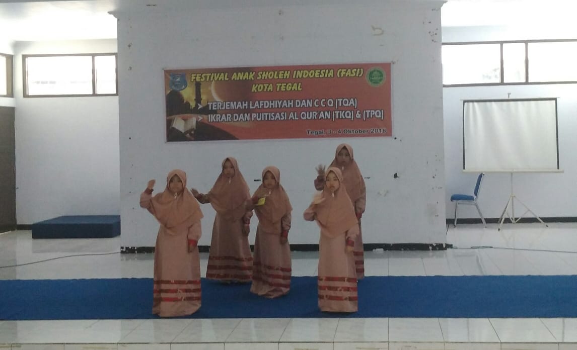 TEGAL-Festival Anak Sholeh Indonesia (FASI) tingkat Kota Tegal Tahun 2018 digelar 3-4 Oktober 2018 di Kawasan Balai Kota Tegal, Jalan Ki Gede Sebayu, Kota Tegal. Festival tersebut merupakan kegiatan rutin, yang bertujuan membentuk generasi yang sholeh dan sholehah.