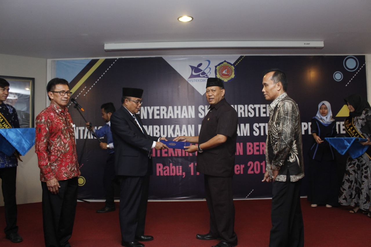 SK itu secara seremonial diserahkan oleh Kepala Lembaga Layanan Pendidikan Tinggi (LLDikti) Wilayah VI Jateng, Prof. Dr. DYP Sugiharto, M.Pd Kons kepada Direktur PHB Tegal Mc. Chambali, B.Eng E.E., M.Kom, didampingi Ketua Yayasan Pendidikan Harapan Bersama (YPHB) Khafdillah, MS S.Kom S.H., M.H.