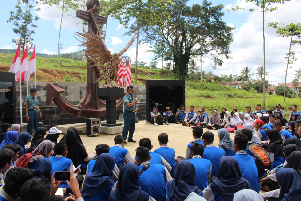 Dihadapan ratusan pelajar, Paspotmar Lanal Tegal Kapten Laut (P) Subandi yang hadir mewakili Komandan Lanal Tegal Letkol Laut (P) Agus Haryanto SE, M.Tr.Hanla, MM, menjelaskan tentang sejarah singkat Monumen Perjuangan TNI-AL Kalibakung.