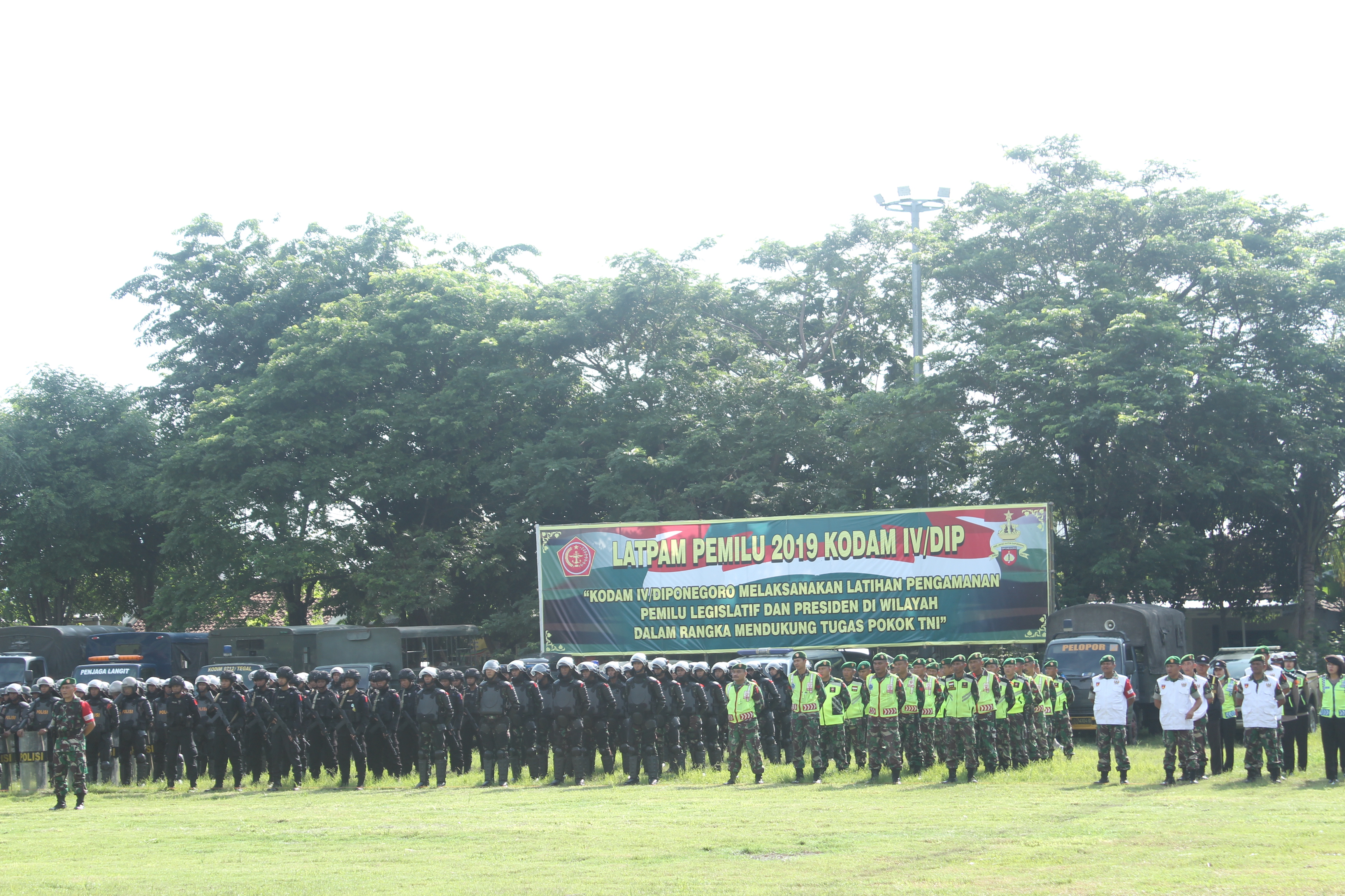 Tegal – Latpam Pemilu 2019 KODAM IV/DIP digelar di lapangan GOR Wisanggeni Kota Tegal, (9/2) pagi. Menghadirkan semua unsur dari Pemerintah Kota Tegal, Polres Tegal Kota, TNI, Satpol PP.
