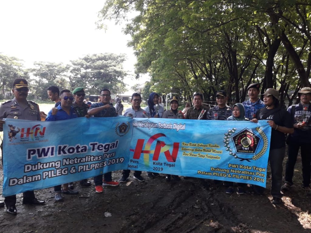 Ketua PWI Kota Tegal, M. Saekhun menyampaikan bahwa aksi damai tersebut dalam rangka memperingati Hari Pers Nasional 2019. ‘’ Di Hari Pers Nasional ini kami mengajak kepada masyarkat untuk ikut mensukseskan pesta demokrasi 17 April 2019. Dengan mengedepankan etika tanpa ada intervensi dan paksaan dalam menggunakan hak pilihnya,’’ ujarnya.