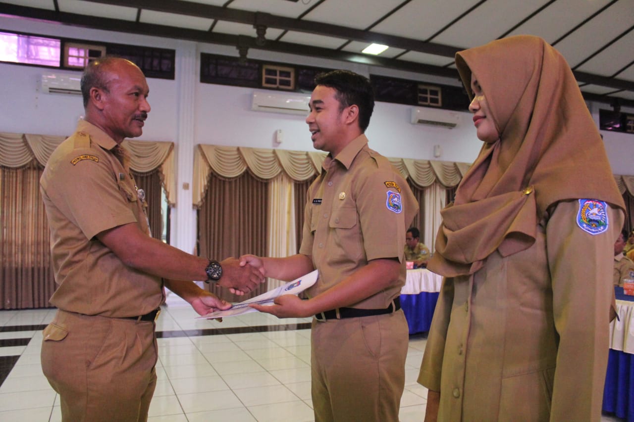 TEGAL-Calon Pegawai Negeri Sipil (CPNS) di Lingkungan Dinas Pendidikan dan Kebudayaan (Disdikbud) Kota Tegal menerima Surat Perintah Melaksanakan Tugas, Senin (1/4/2019) di gedung Adipura Komplek Balai Kota Tegal.