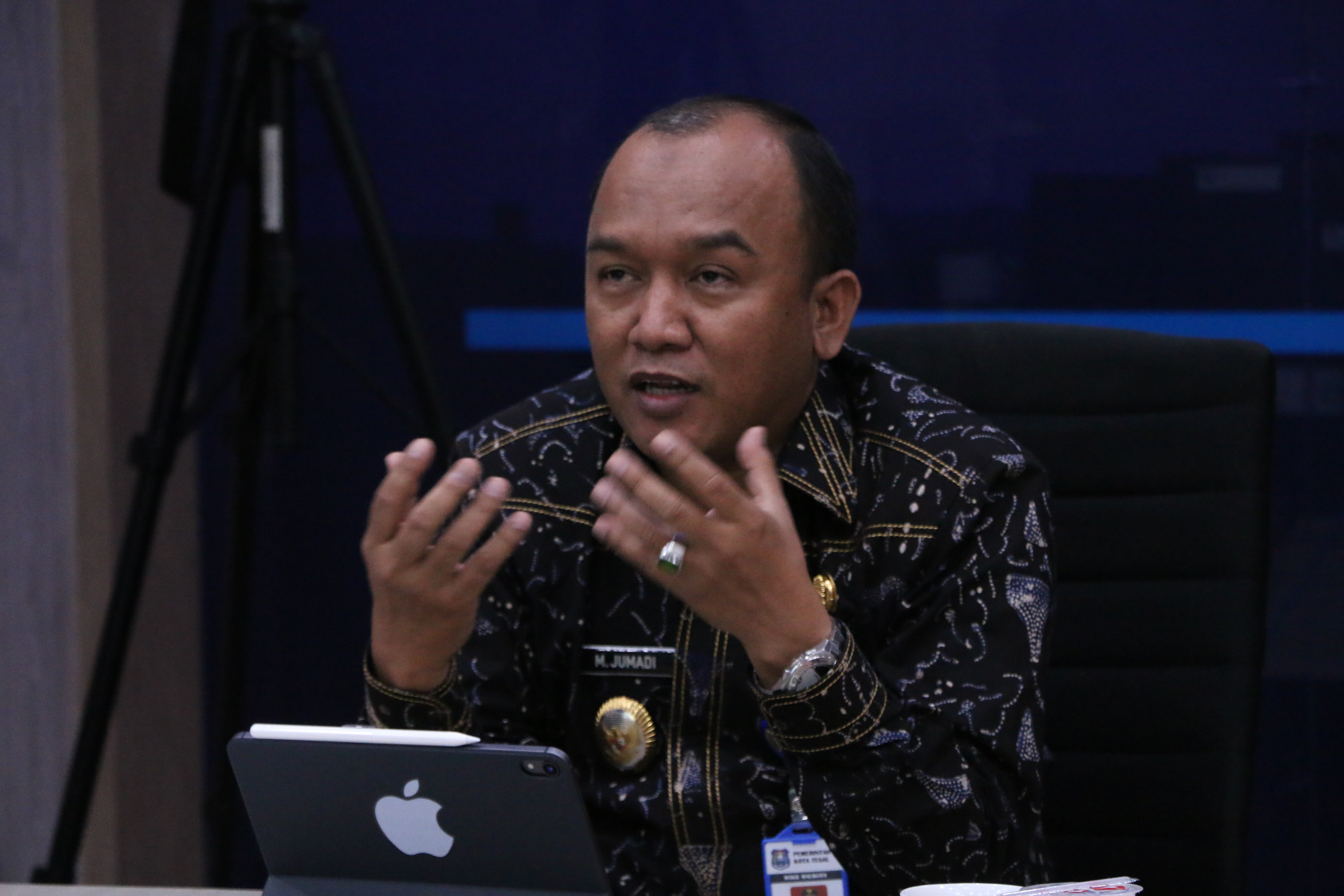Jumadi didampingi Kepala Badan Kepegawaian Pendidikan dan Pelatihan Daerah (BKPPD) Kota Tegal Dr. Drs. Irkar Yuswan Apendi, M.M., dan Kepala Dinas Komunikasi dan Informatika (Dinkominfo) Kota Tegal Drs. Markus Wahyu Priyono.