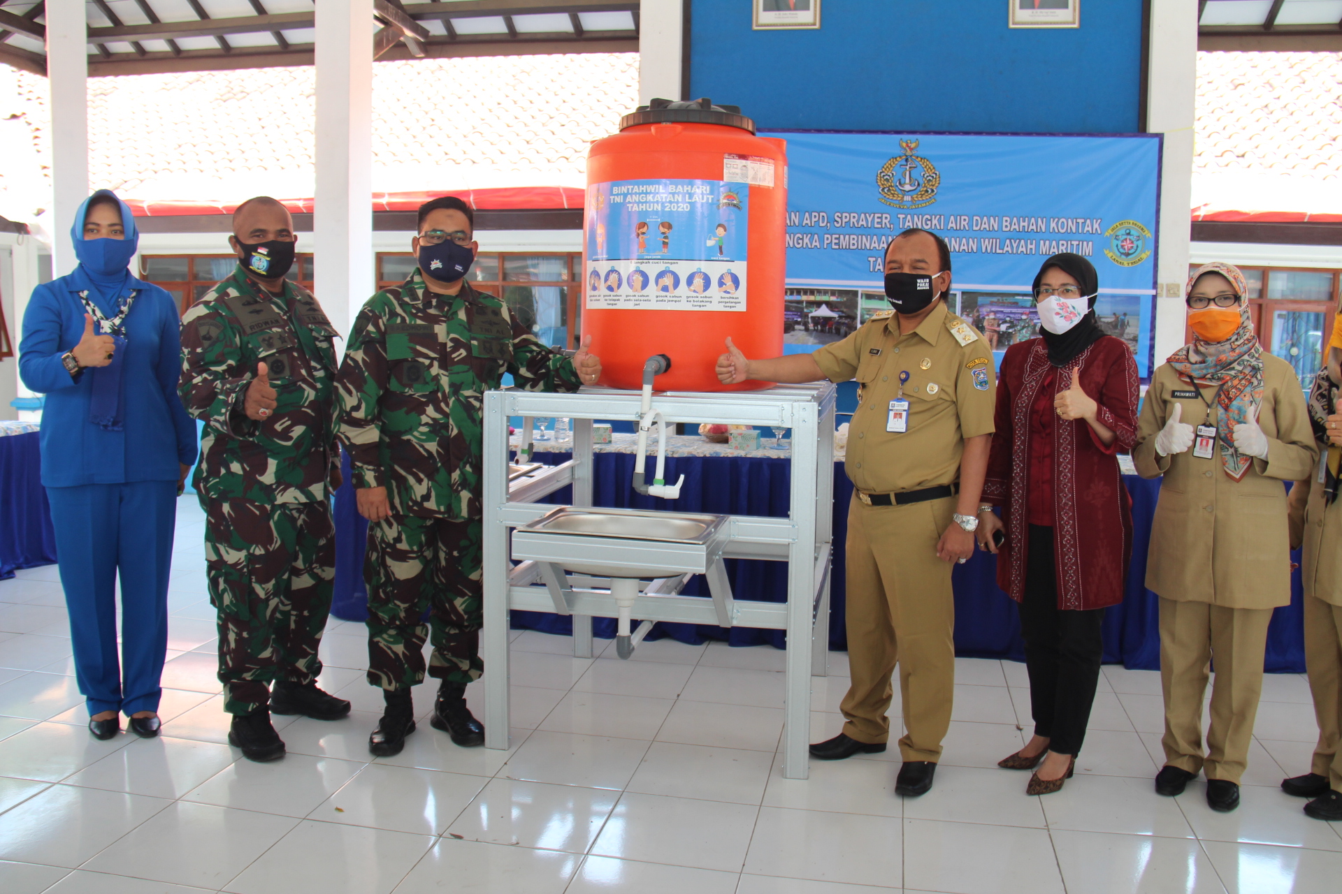 Tegal – Markas Besar TNI Angkatan Laut bersama Lanal Tegal memberikan bantuan sejumlah Alat Pelindung Diri (APD) kepada Pemerintah Kota Tegal. Bantuan diserahkan langsung oleh Kasubdis Binpuan Dispotmar Mabes AL Kolonel Marinir Baydowi Oktavidia kepada Wakil Walikota Tegal Muhamad Jumadi,ST MM yang disaksikan, Komandan Lanal Tegal Letkol Marinir Ridwan Aziz, Wakil Ketua Darmawanita Kota Tegal Dyah Pobondari Jumadi serta Ketua Jalasenastri Lanal Tegal Via Ridwan Aziz di Pendopo Kecamatan Tegal Barat. Senin (10/8).