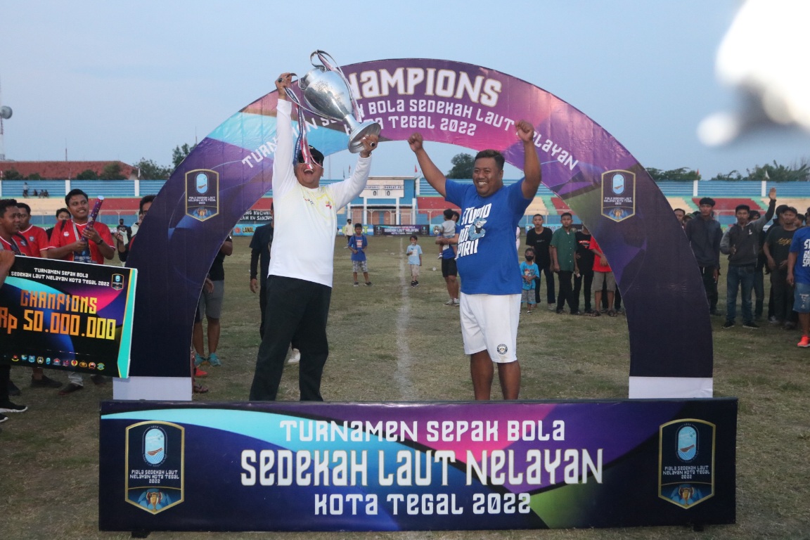 TEGAL – Barisan Anak Cantrang (Bancat) FC berhasil menjadi Jawara pada Turnamen Sepakbola Terbuka Sedekah Laut Nelayan Kota Tegal 2022 setelah menundukan Putra Cantrang FC, melalui drama adu finalti 5 – 3, di Stadion Yos Sudarso, Selasa (6/9/2022).