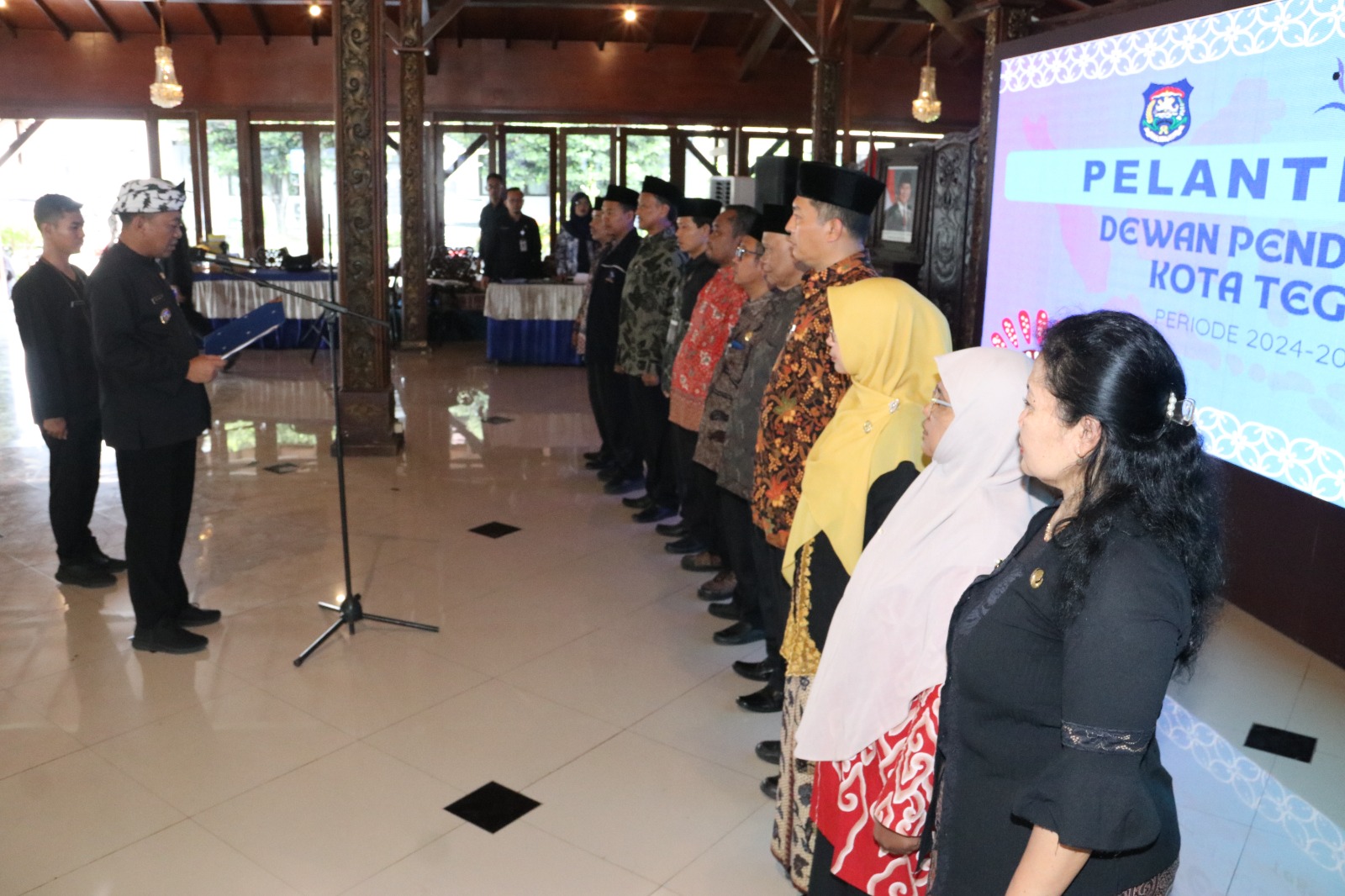 KOTA TEGAL – Penjabat (Pj) Wali Kota Tegal, Agus Dwi Sulistyantono, resmi melantik Pengurus Dewan Pendidikan Kota Tegal periode 2024-2029 di Pendopo Ki Gede Sebayu, Kompleks Balai Kota Tegal, Kamis (19/12).