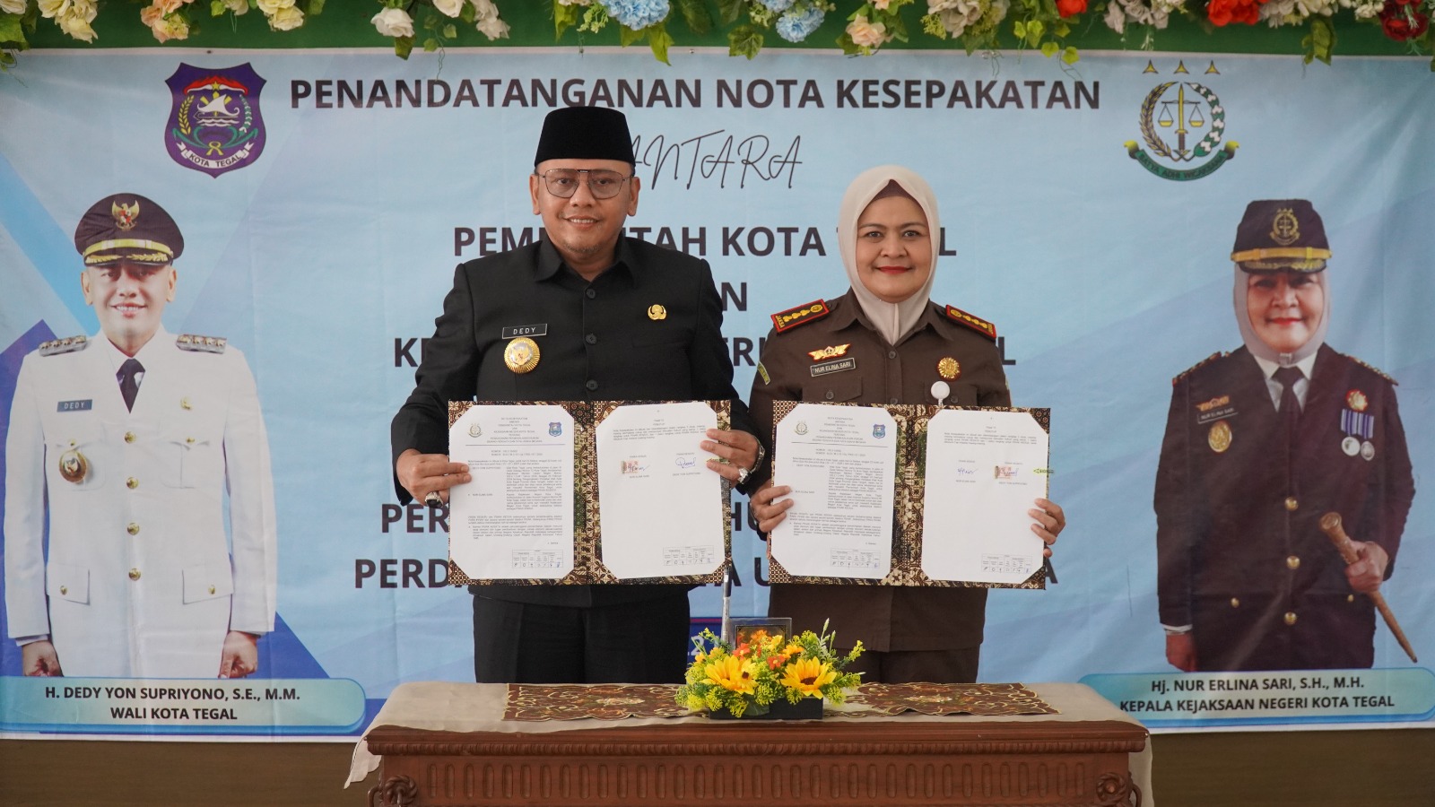 Hal tersebut ditandai dengan penandatanganan bersama Nota Kesepahaman (MoU) oleh Wali Kota Tegal, Dedy Yon Supriyono dengan Kepala Kejaksaan Negeri (Kajari) Kota Tegal Nur Elina Sari, bersama-sama di Aula Kejari Kota Tegal (22/07/25).