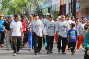 Peserta jalan sehat nampak antusias mengikuti jalan sehat sampai ke Finish di Jalan KH Ahmad Dahlan, tak jarang mereka membawa sanak keluarga untuk berpartisipasi meramaikan jalan sehat tersebut.