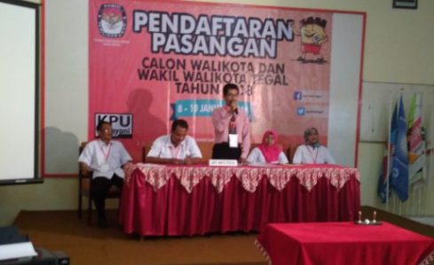 TEGAL-Sampai batas akhir pendaftaran bakal pasangan calon, 10 Januari 2018 pukul 24.00, terdapat lima pasangan yang akan mengikuti Pilkada Kota Tegal. Komisi Pemilihan Umum (KPU) Kota Tegal membuka pendaftaran sejak 8 sampai 10 Januari 2018.