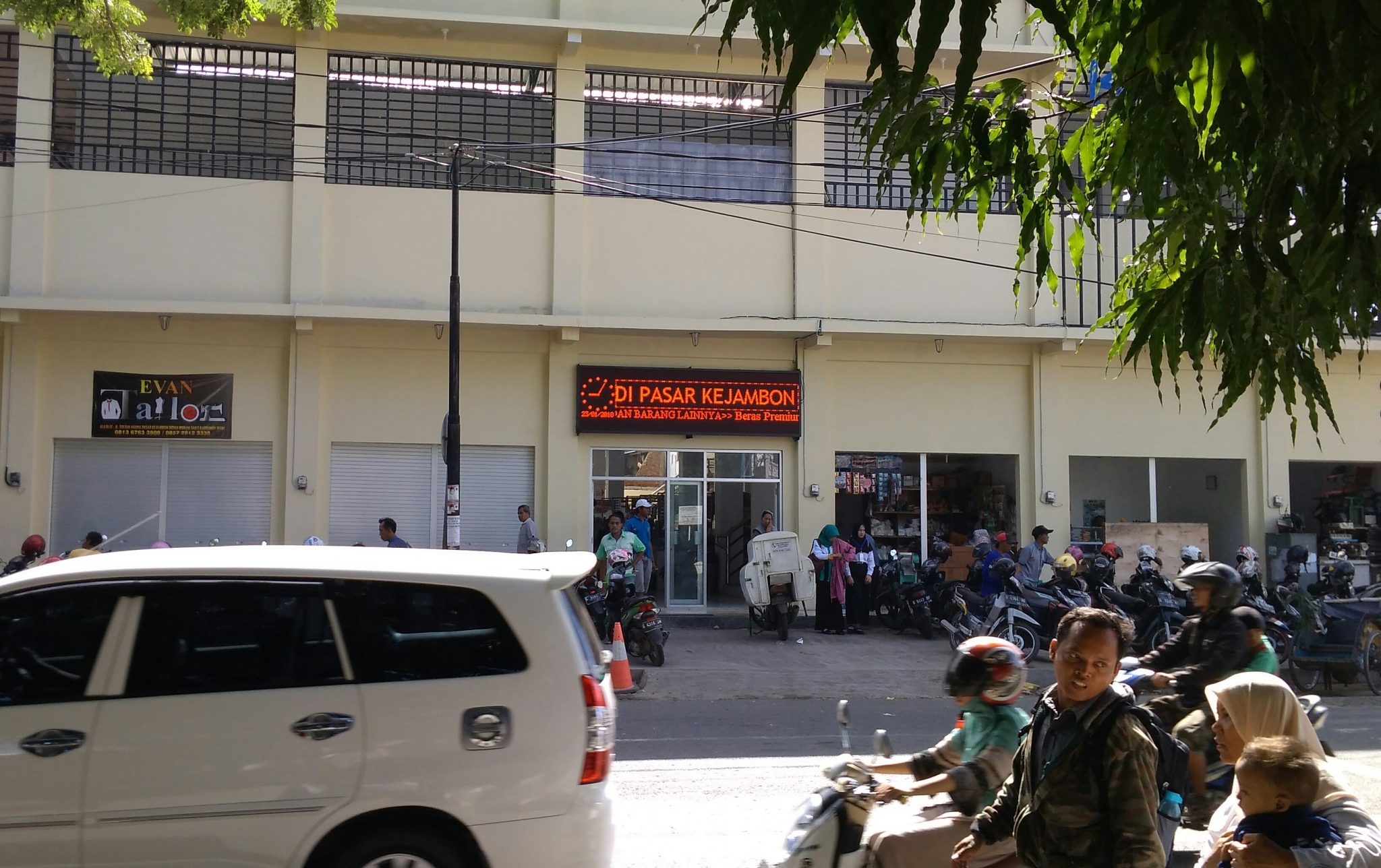 Seperti nampak di pasar Kejambon, nampak running text tersebut dipasang di pintu masuk utama pasar tersebut.
