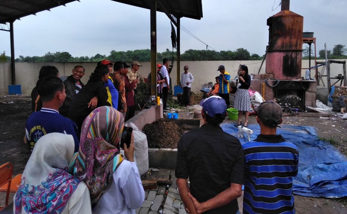 Pada kesempatan tersebut, Wlda Yanti mempraktekan daur ulang sampah organik menjadi kompos. Nampak 30 peserta dari pengelola TPST/TPS serius mengikuti kegiatan tersebut di TPST Slerok, Rabu (14/2) siang. (Sa. Amin/WB)