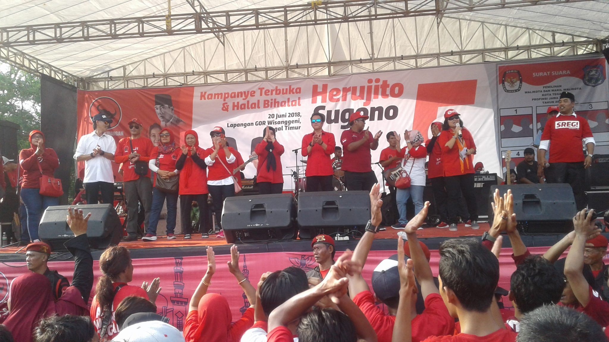 TEGAL – Kampanye terbuka di hari kedua menghadirkan pasangan calon Wali Kota dan Wakil Wali Kota nomor urut 5 Herujito, S.IP dan Sugono di lapangan sepak bola depan GOR Wisanggeni…